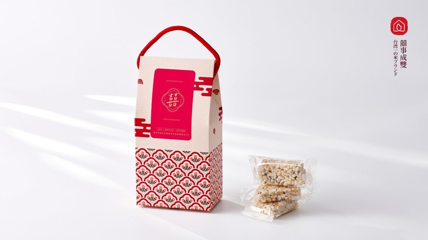 以傳統米香結合創新風味的「椒鹽口味」呈現,鹹香中帶著淡淡穀香,象徵婚姻生活的「平淡中有滋味」,寓意新人相知相惜、幸福長久。