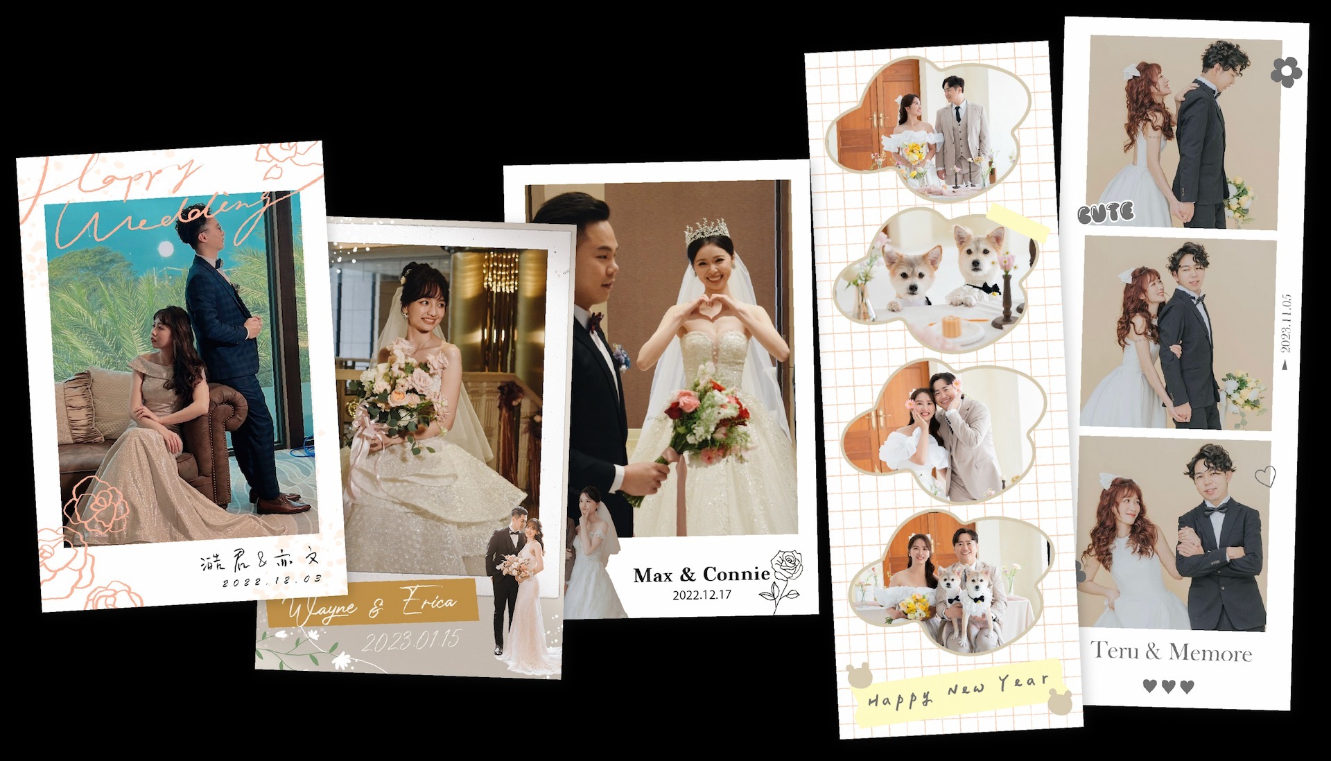許多新人除了購買實體婚禮小物,還會規劃租借拍拍印的互動拍貼機,能現場印製「客製化照片」作為贈送賓客的伴手禮。還可以依照婚禮設計獨家專屬相框,及AI美顏功能,還能寫上祝福,讓每張照片都成為獨一無二的紀念。