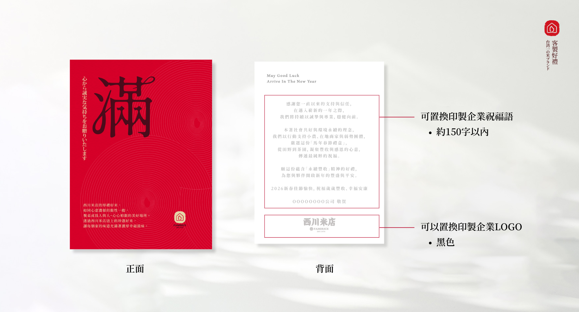 萬用賀卡放置於禮盒內,印上企業LOGO、祝賀語、長官簽名檔