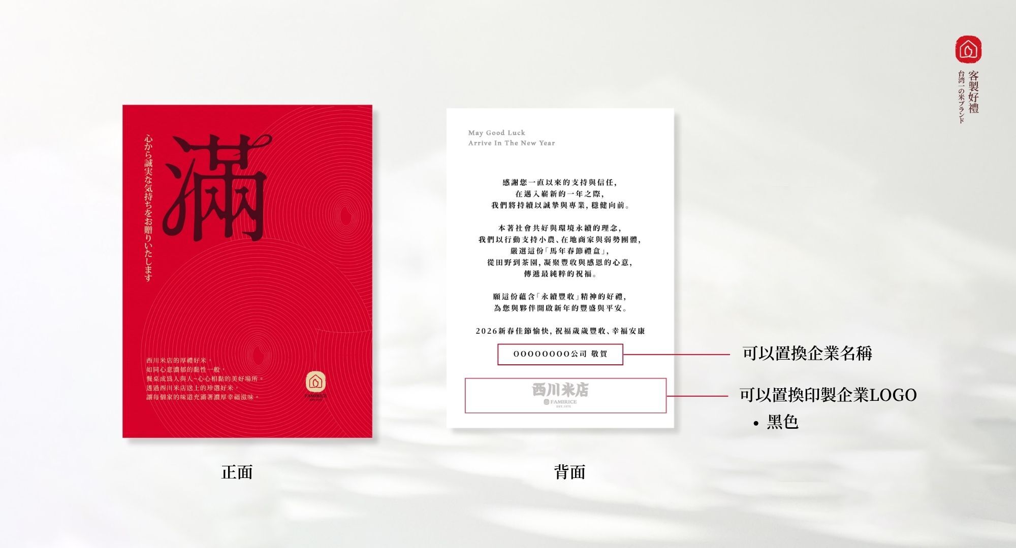 萬用賀卡放置於禮盒內,印上企業LOGO、祝賀語、長官簽名檔