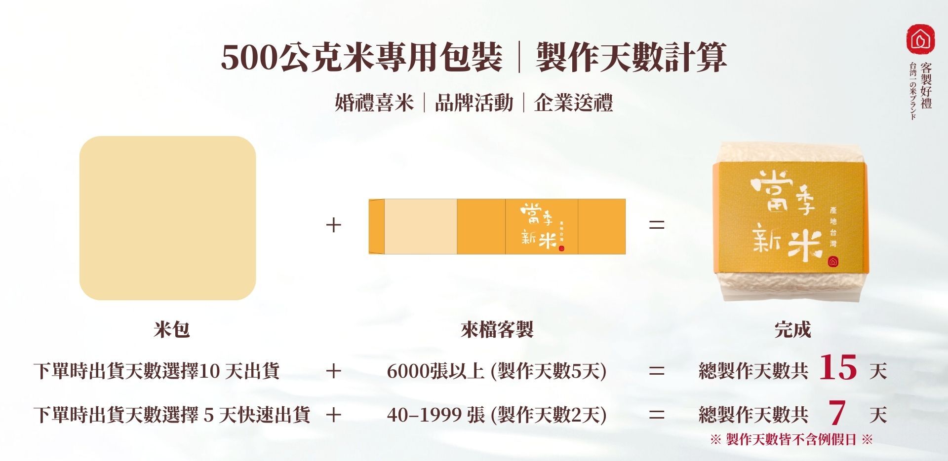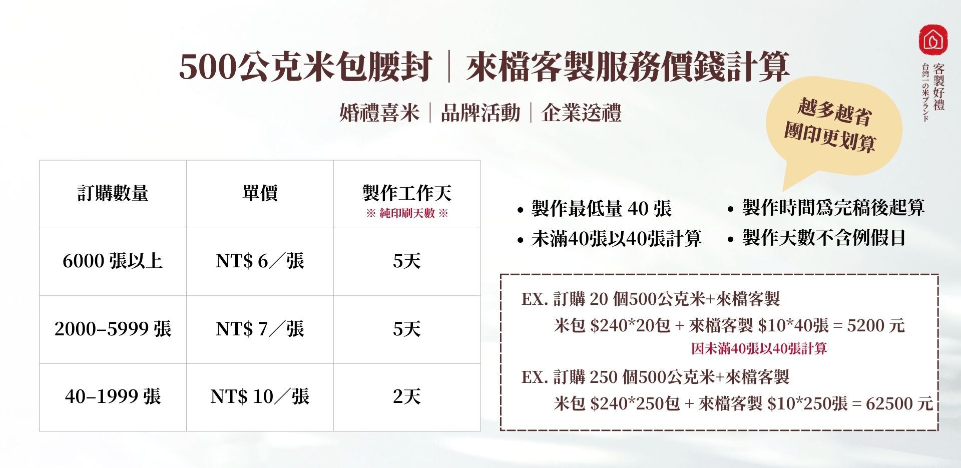 質感的500g小包裝米,客製印上企業 / 公司 LOGO